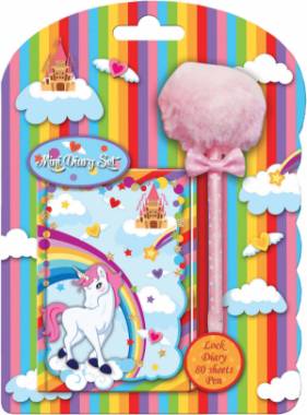 Блокнот А6 "Единорог" 80 листов, на замке+ручка "Pompon", на блистере