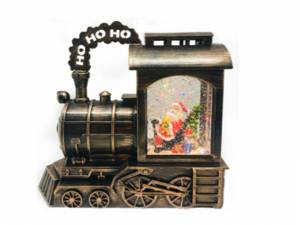 Композиция новогодняя "Паровоз с Дедом Морозом" светящийся (с жидкостью и глиттером) 24,5*11*22,5 см.
