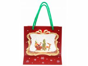 Композиция новогодняя "Подарочный пакет с Елкой и Дедом Морозом на санях с оленями" светящаяся (с жидкостью и глиттером)
