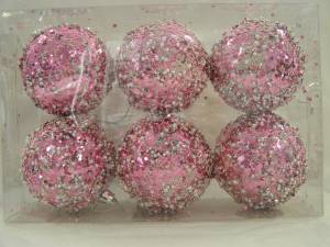 Набор шаров d- 8 см., 6 шт. (розовый, глянец с декором)