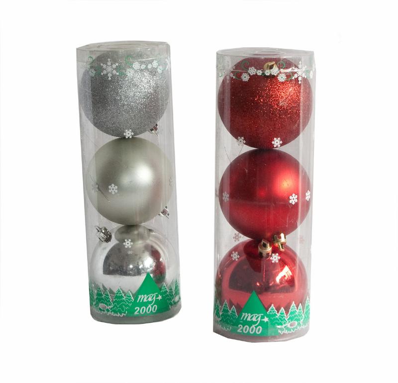 Набор шаров d-8 см., 3 шт. в тубе (глянец) красный, золото, серебро, синий
