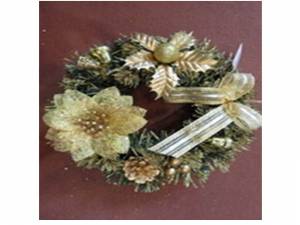 Главная > Новогодние товары > Хвойная продукция > Веночки украшенные > Венок рождественский, d-25 см. (золото)